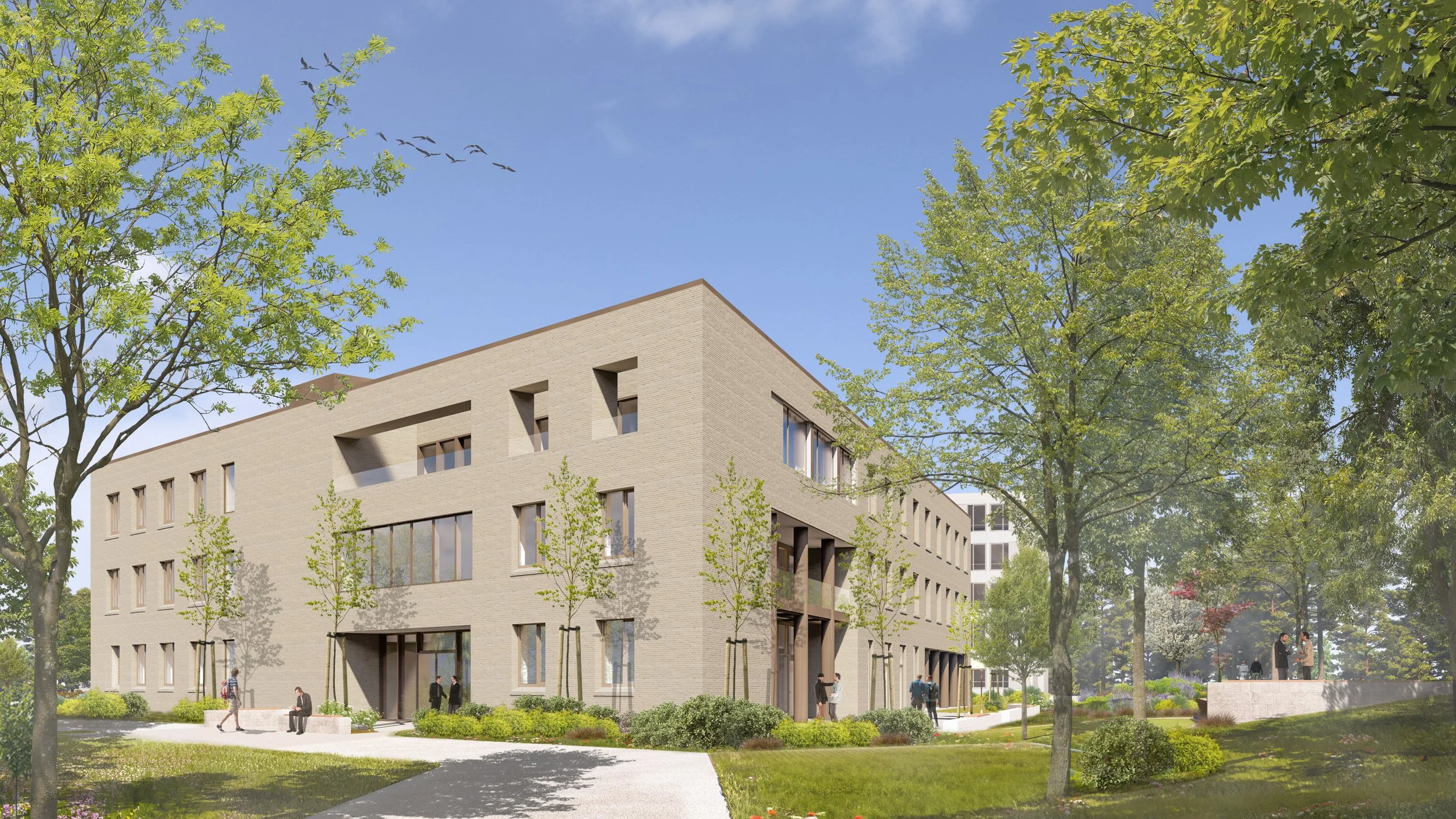 Auf dem Gelände des Bundeswehrkrankenhauses Ulm entsteht derzeit ein dreigeschossiger, polygonaler Solitärbau für die Psychiatrie.